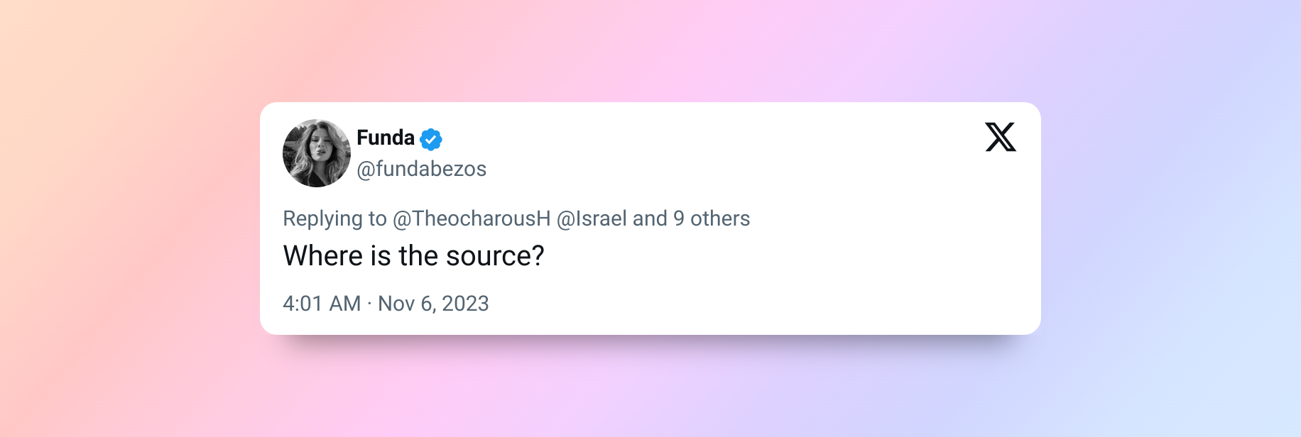 Many conversations occur daily on X. Being so fast-paced, the platform doesn’t have the culture of checking your sources or including any even if the original tweet is flooded with users commenting, “Source?” With a character limit of 280 characters, about 2-5 sentences, there is little room for citing your sources or detailing the original account.