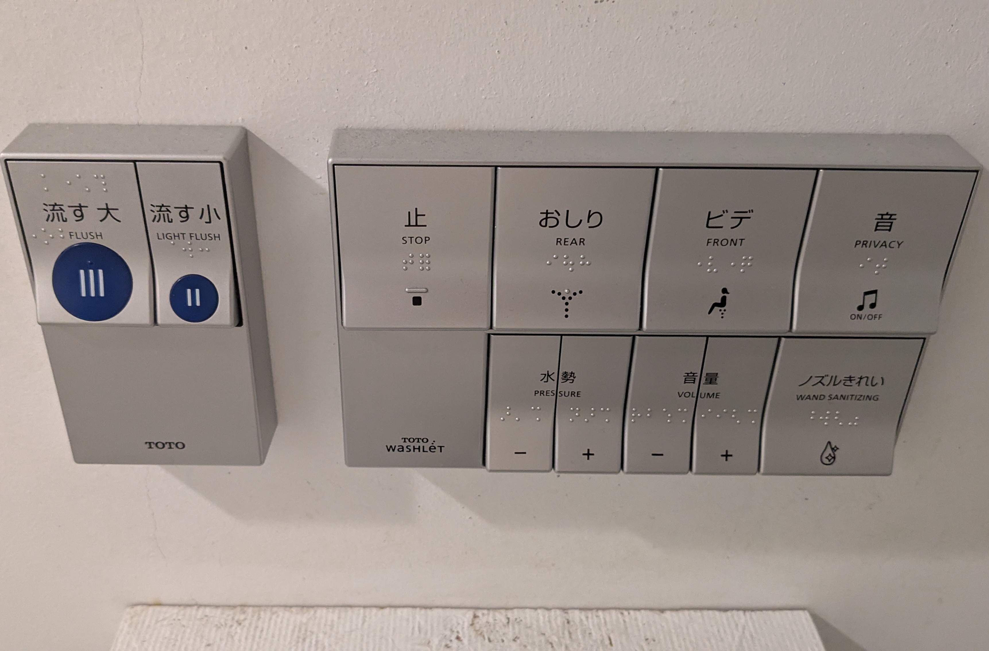 Bidet controls with many options at a local cafe.